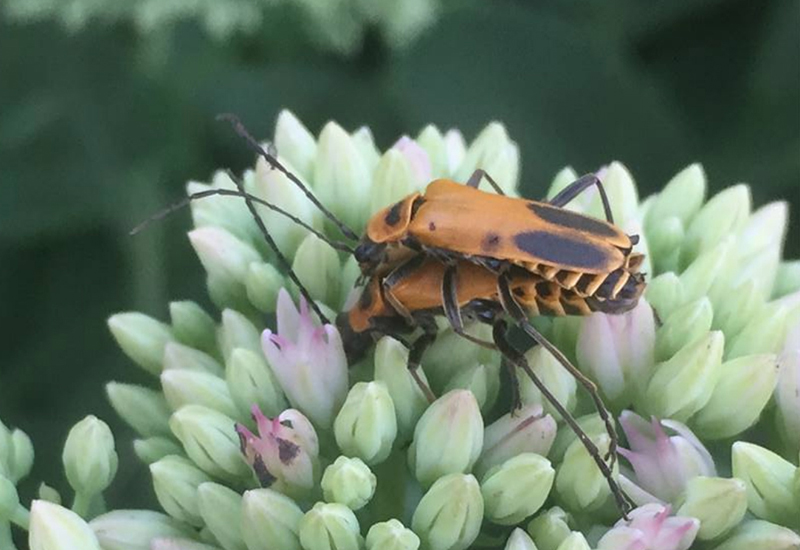 Your letter to the bugman: I was told this is a Goldenrod Soldier Beetle. I’m not sure what they are, and if they are destructive. I used to get a ton of bees on this sedum. Now I get these Beetles doing the wild thing.
